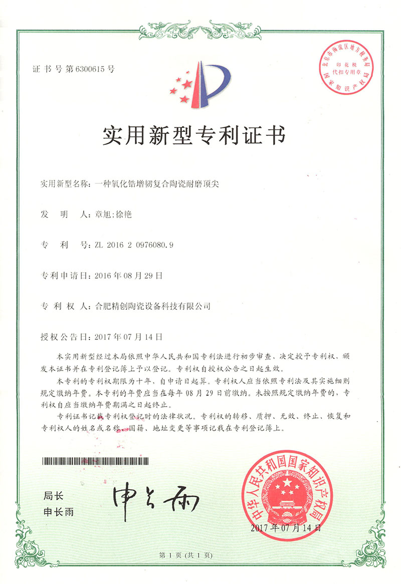 (2017實用新型)一種氧化鋯增韌復合陶瓷耐磨頂尖